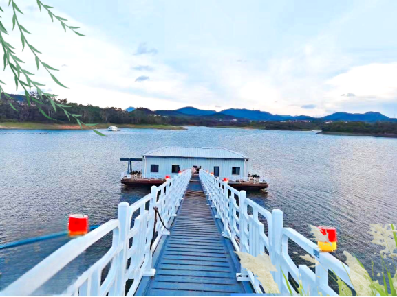 6. 浮橋式泵站:通過浮橋連接岸邊與泵站主體,輸水管鋪設在浮橋上,這種結構穩定性好,主要適用于水位變化頻率低,流速較慢,風速不大,岸坡較平坦的工況。特點,浮橋可起到支撐和導向作用,便于輸水管的布置和維護,同時也方便人員和設備在岸邊與泵站間通行。